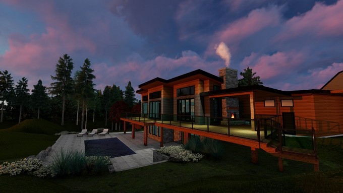 Modern chalet was designed to take advantage of the expansive views of Georgian Bay.